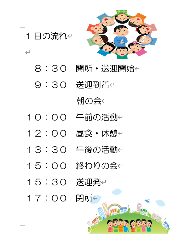 自閉症の障害特性に配慮し、1日の見通しが持てるようなアプローチを行い主体的に活動に参加できるように支援します。